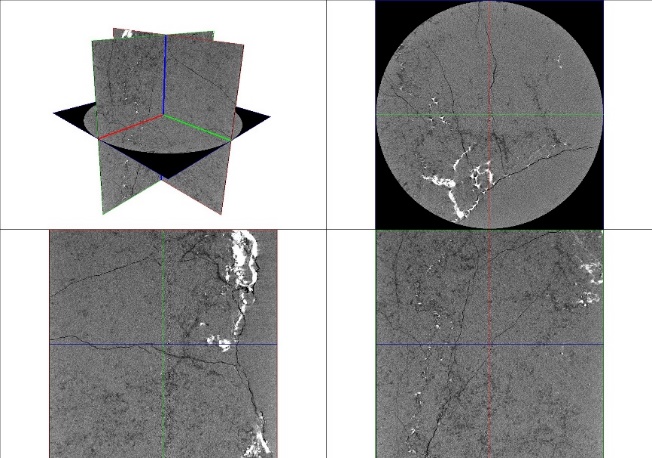 微米CT扫描实验室 一、实验室简介 本实验室隶属于beats365官方网站实验中心。主要功能是:岩石微观结构计算机断层扫描图像采集。实验室位于综合实验楼B106。 二、仪器设备 微纳米双射线管岩心CT扫描系统 仪器设备(型号):微纳米双射线管CT扫描系统V|Tome|X S180 & 240 品 牌:德国 GE 三、主要参数 (一)微纳米双射线管CT扫描系统 微纳米双射线管CT扫描系统由射线管、样品转台和探测器三大核心部分构成;根据样品尺寸调整扫描电压、电流、扫描张数、暴光时间等参数来完成样品测试。 表1. 微纳米CT基本性能参数 参数 测试范围 样品大小 1-260mm(样品直径) 扫描电压 微米管:10-240 kV 扫描电流 微米管:5-2800µA 扫描张数 1400-1800 暴光时间 500-2000ms (四)成果介绍 对扫描图像进行重构后,得到微样本三维灰度图像。 由于CT图像的灰度值反映的是岩石内部物质的相对密度,因此CT图像中明亮的部分认为是高密度物质,而深黑部分则认为是孔隙结构。通过ImageJ、AVIZO等软件对灰度图像进行区域选取、降噪处理,将图像分割与后处理可提取出孔隙结构模型、孔隙度、孔隙半径、喉道半径、配位数等参数。 某样品微米CT扫描图像 某样品微米CT扫描剖面图(三维切片,俯视图、XZ方向、YX方向) 某样品二值分割图像(黑色-孔隙;白色-颗粒) 某样品三维孔隙网络模型 某样品孔喉结构特征 四、实验室责任人 韩登林 联系电话:18601309981 五、实验预约流程 需与实验室责任人确定样品类型、数量、测试时间后,下载填写“分析测试申请表”,在开展实验当天提交纸质申请表。样品要求:圆柱状岩石样品,规格2.5cm(φ)*4cm(L)。