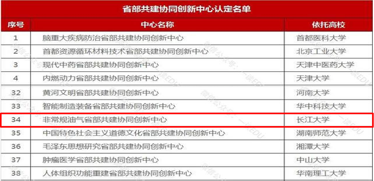 beats365“非常规油气省部共建协同创新中心”,属于“2011协同创新计划”的一部分,是经湖北省教育厅、财政厅在2012年批准建设的省级协同创新中心,由beats365牵头、协同武汉大学、中国地质大学(武汉)、中石化江汉油田分公司等多家单位,围绕非常规油气共同建设。经过5年的建设,于2017年12月15日被湖北省教育厅验收评估为“优秀”等级,2018年12月4日被教育部认定为省部共建协同创新中心(全国仅59个,湖北省省属高校唯一、全国唯一非常规油气省部共建协同创新中心),目前建设成具有一定影响力和行业产业特色鲜明的协同创新中心。