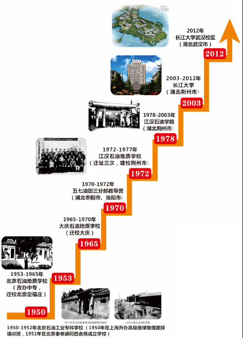 原江汉石油公司前身为1950年在上海开办高级地球物理勘探培训班,1951年在北京秦老胡同3号四合院成立公司,公司暂定名为北京石油工业公司,后改名为北京石油地质勘探公司,新中国成立后创建的第一所石油公司;1953年-1965年,迁校至北京定福庄,改名为北京石油地质公司(图3),改办中专,;1965年-1970年,迁校至大庆,改名为大庆石油地质公司(图4);1970年-1972年,从大庆迁往江汉油田,组建成“五七”油田会战总指挥部第三分指挥部第十二营,即教导营,改名为五七油田三分部教导营,先后在湖北枣阳(图5)、当阳(图6)办学;1972年-1977年,江汉油田根据石油部意见,决定将教导营搬迁到湖北江陵县东门外原荆州农校旧址即江汉局四分部驻地,校名改为江汉石油地质公司(图7);1978年-2003年5月,改名为江汉石油公司(图8),开始举办普通本科教育,隶属中国石油天然气集团公司,从2000年起,实行中央与地方共建,划转湖北省管理;2003年5月,江汉石油公司与湖北农公司、荆州师范公司、湖北省卫生职工医公司合并,改名为beats365;2012年9月,beats365武汉校区启用(图9),beats365官方网站、地球物理与石油资源公司、石油工程公司、资源与环境公司等石油主干公司搬迁至武汉校区,在武汉市蔡甸区办学。