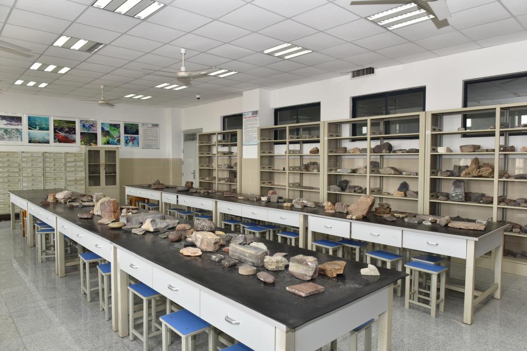 beats365官方网站实验中心拥有岩石矿物陈列室、古生物陈列室和沉积构造实验室等三个基础地质类开放实验室。 岩石矿物实验室(图36)位于武汉校区综合实验大楼A405,面积约75m2。该实验室陈列了常见造岩矿物、沉积岩、岩浆岩、变质岩三大类岩石共计300余种典型标本。这些标本类型丰富、保存精美。可以面向社会开展以地球的物质组成为题的科普教育活动。 岩石矿物实验室 古生物实验室(图37)位于武汉校区综合实验大楼A407,面积约75m2。该实验室陈列了从寒武纪到新近纪,包括腕足动物门、软体动物门、腔肠动物门等400余种典型标本。这些古生物标本覆盖的地球历史范围漫长,涉及的古生物门类较为齐全,保存精美。可以面向社会开展以地球生命历史演化为主题的科普教育活动。 古生物实验室 沉积构造实验室(图38)位于武汉校区综合实验大楼A403,面积约75m2。该实验室陈列了沉积岩的各类沉积构造标本300余件,主要承担沉积岩石学相关课程的实验课。该实验室保存的各类丰富的沉积构造现象独特,种类齐全,可以面向公众开发沉积岩特征及形成演化认知为主题的科普教育活动。 沉积构造实验室