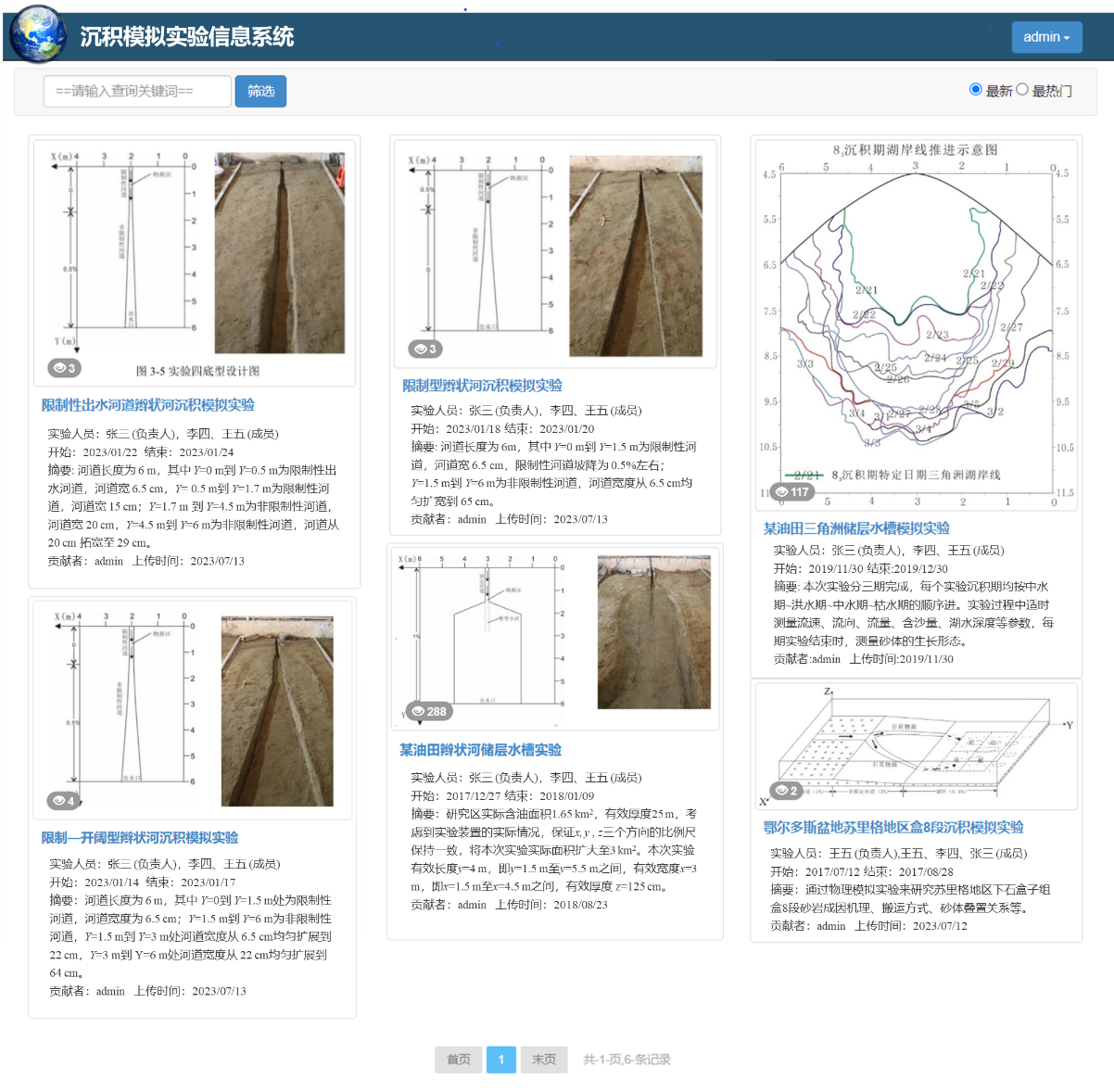 科普基地从建设到开放使用过程中一直坚持加强网络媒体平台的同步建设和公共科普信息宣传与服务。结合我院网站建设和公司地学类在线开放课程建设等工作,开展了中国地层标本长廊、湖泊沉积模拟实验、长江三峡标本长廊的等一系列数字化信息资源的制作与在线发布工作。 (1)构建了中国南北地层标本长廊网上实景三维模型 2023年,新建“中国地层标本长廊”课间地学实习基地,占地1350平方米,极大地丰富了公司地质课间实习资源,为了加强长廊的宣传推广,我们采用无人机倾斜摄影基础构建了长廊的实景三维模型(图51),并在网上发布。公众可足不出户地多层次多角度在线观察地质长廊的三维模型,达到身临其境的效果。技术上,采用大疆 精灵 4Pro无人机和无人机飞行控制软件和Context Capture建模软件构建了不同详细程度的三维模型,形成了数字长廊的三维数据体,发布成网络开放格式3DTiles,能够达到在线高效显示的目的。 中国地层标本长廊三维模型 (2)构建了长江三峡地层标本长廊网上展示动画 自20世纪初以来,三峡地区就已成为我国地质学家开展地层学、古生物学、沉积学等多种学科研究的重要场所;它同时也是beats365地球科公司系沿用多年的地层学、沉积学野外实习基地和开展过多项科研项目的区域,目前已积累了大量地质资料和研究成果。为将这些丰富的资料和成果转化为教学资源,抢救性地保护三峡地质资源,在中国石油天然气集团公司的资助下,设立了《长江三峡剖面微缩工程》项目,在beats365校园内建立了三峡地层标本长廊(图52)校内实习基地。为了将其该项目公众宣传,同时为了保证了地层标本的连续性和完整性,弥补了长廊标本的密度有限、且难以陈列易风化破碎的标本等问题,我们采用Flash动画技术制作了三峡长廊的动画视频集成了每一块标本的高清照片,公众可通过网站(图53)在线观察地质长廊的标本照片及其文字描述,学习相关地质知识。 长江三峡标本长廊 长江三峡标本长廊网络媒体 /cjysx/sjjxtj/zjsxbbzl.htm (3)建设了湖泊沉积模拟实验在线开放信息系统 面向湖泊沉积模拟实验大量实验数据资料的管理、分享和分析需求,提出B/S模式的沉积模拟实验信息系统(图54-图56),实现了沉积模拟实验的实验设计方案、实验观测数据、实验结果等信息的集成管理、高效检索和可视化分析等功能,从而为沉积模拟实验的网上信息化管理与分析应用提供可行方案。实验管理人员和大众可通过系统轻松完成实验项目检索、实验详情浏览、砂体测量数据的统计分析等工作。 实验相册浏览 系统首页(实验项目检索目录) 实验观测数据统计分析 同时,基地结合beats365官方网站主页宣传工作,围绕与科普基地相关的各类活动开展了大量同步的在线宣传报道工作(图57-图59)。例如,面向社会公众开放的“实验室开放日”活动,面向全校老员工开展的“地学实践竞赛”活动,面向蔡甸姚家林小学开展的老员工支教活动等。这些宣传报道将科普基地广泛地推荐给社会公众,起到了良好的辐射效应。 举行科普活动 举行科普活动 举行科普活动