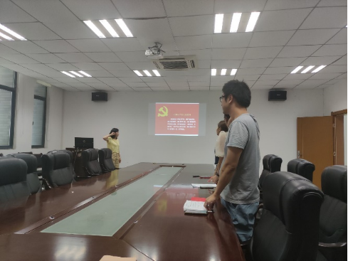活动在庄严的国歌声中拉开帷幕。支部副书记张广斌同志带领支部成员们重温入党誓词。