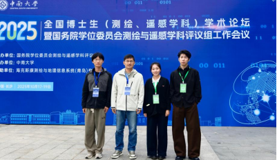 (通讯员 王家璇) 10月17日-19日,2025年全国博士生(测绘、遥感学科)学术论坛暨国务院学位委员会测绘与遥感学科评议组工作会议在中南大学潇湘校区召开。公司教师邓帆,研究生王家璇、杨连成,本科生饶旭乾参加了本次会议。