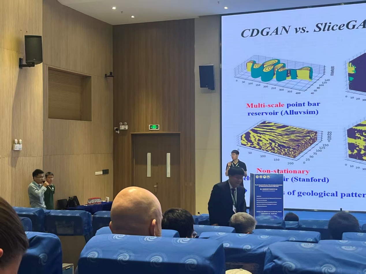 大会精心设置了2场专业短课程、22个专题会议环节、7场主旨报告(特邀德国卡尔斯鲁厄理工公司Alik Ismail-Zadeh教授、纳米比亚地质调查局副局长Anna Nguno、美国怀俄明大学Dario Grana教授等国际国内权威学者主讲)、153场口头汇报及44个海报展示。公司尹艳树教授为“Recent developments in constructing geological structures: Beyond conventional methods”专题会议召集人,谢鹏飞特聘副教授、胡迅博士后在大会上分享了团队的最新研究成果。