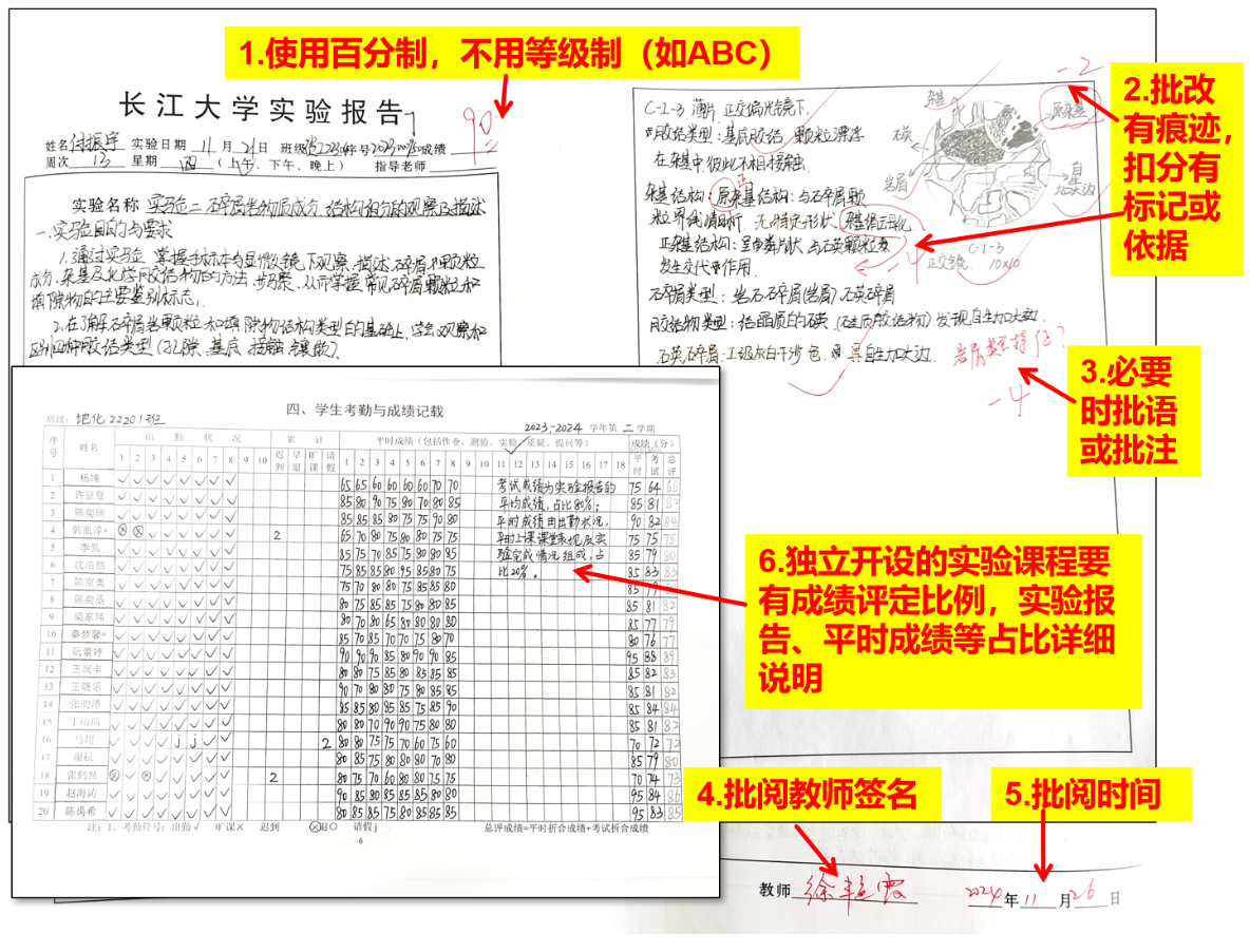 各实验室每学期开展2次自查,重点核查批阅规范性与归档完整性。