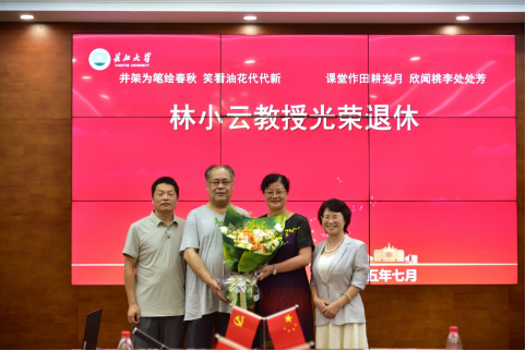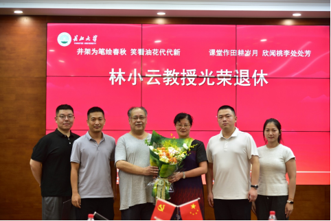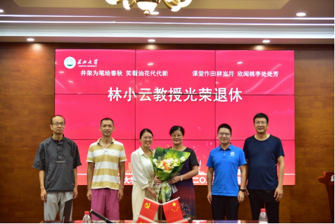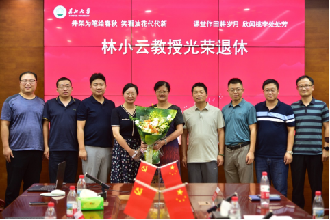 公司副经理胡忠贵代表公司向林小云教授颁发了承载着全体师生敬意与祝福的荣休纪念牌。副经理、工会主席李功权代表公司工会献上了鲜花,表达对她退休生活的美好祝愿。