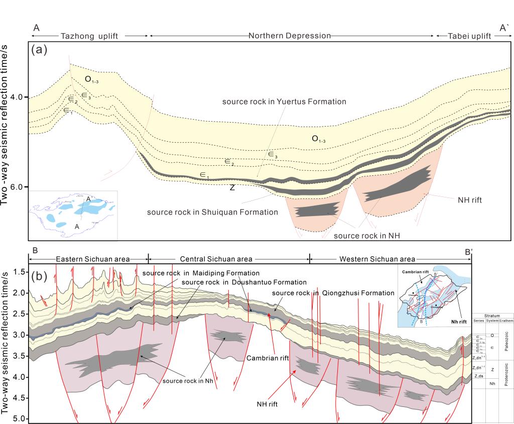 新元古代-寒武纪是地球演化的关键变革期,发生了一系列重大地质事件,最为显著的是超大陆裂解事件、新元古代“雪球”地球事件及新元古代-寒武纪大气-海洋氧化事件等,深刻影响了地球各圈层的演化进程,控制了盆地超深层南华系、埃迪卡拉系和寒武系黑色富含有机质烃源岩的形成。比如华南南华系大塘坡组、埃迪卡拉系陡山沱组、寒武系牛蹄塘组/筇竹寺组黑色页岩及塔里木盆地南华系特瑞艾肯组、埃迪卡拉系水泉组/苏盖特布拉克组、寒武系玉尔吐斯组/西大山组等黑色泥岩。