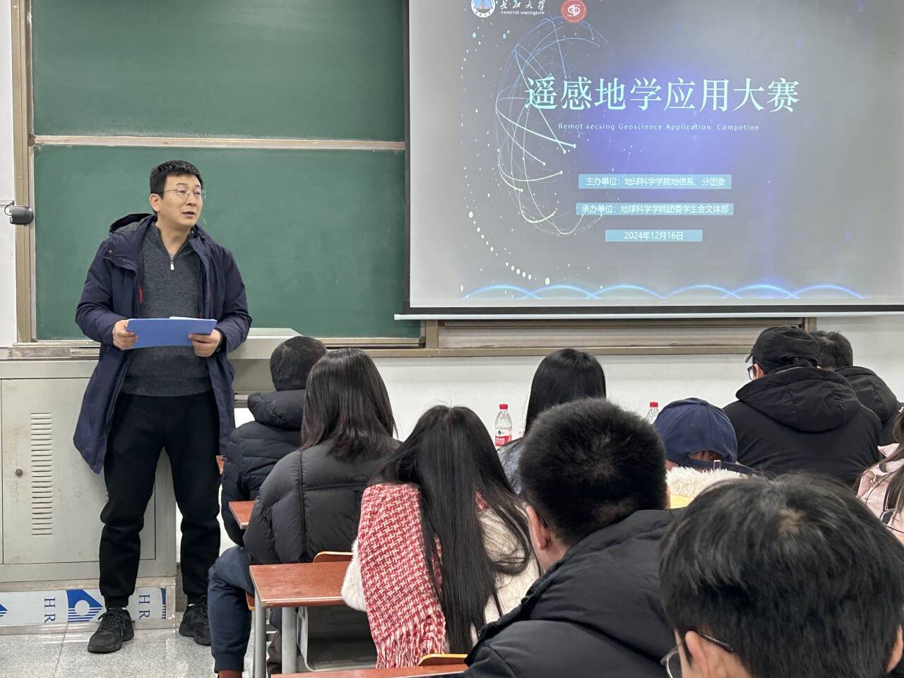 各队展示完毕后,刘远刚老师进行总结点评。他对同学们的精彩表现给予了充分肯定,尤其在团队合作、技术运用、图像分析处理等方面提升明显,并希望同学们在后续的学习中主动将专业知识与解决实际问题相结合,积极思考地信专业知识在国家绿色发展和能源安全等领域的应用,展现地科学子担当。