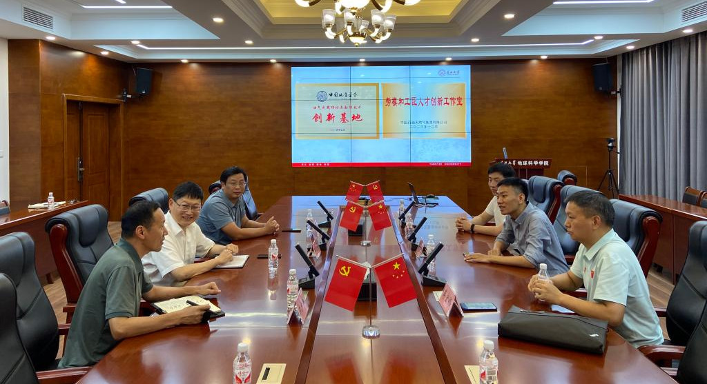(通讯员 韩静)2024年9月25日,中海石油(中国)有限公司上海分公司研究公司党委书记、经理蒋一鸣、国家怀柔实验室新疆研究院人力资源处高级主管周晓东、科研团队骨干蒋宏伟来院交流访问,座谈交流会在武汉校区石油科技大楼C201会议室举行,经理朱光有、公司党委书记杨全辉和李少华教授出席会议,座谈会由经理朱光有主持。
