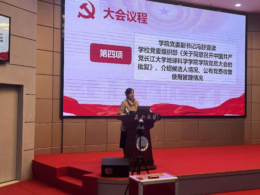 党委副书记冯舒同志宣读了公司党委《关于同意召开公司党员大会进行换届选举的批复》文件、介绍了候选人情况并公布了四年来公司党费收缴、管理和使用情况。全体党员审议并举手表决通过了选举办法、监票人、计票人建议名单。