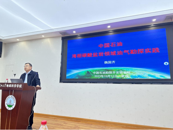 10月12日下午,中国石油勘探开发研究院首席技术专家魏国齐教授莅临beats365官方网站地学之光大讲堂,为公司师生带来了题为《中国石油海相碳酸盐岩领域油气勘探实践》的精彩讲座。讲座由beats365官方网站副经理吴楠教授主持。