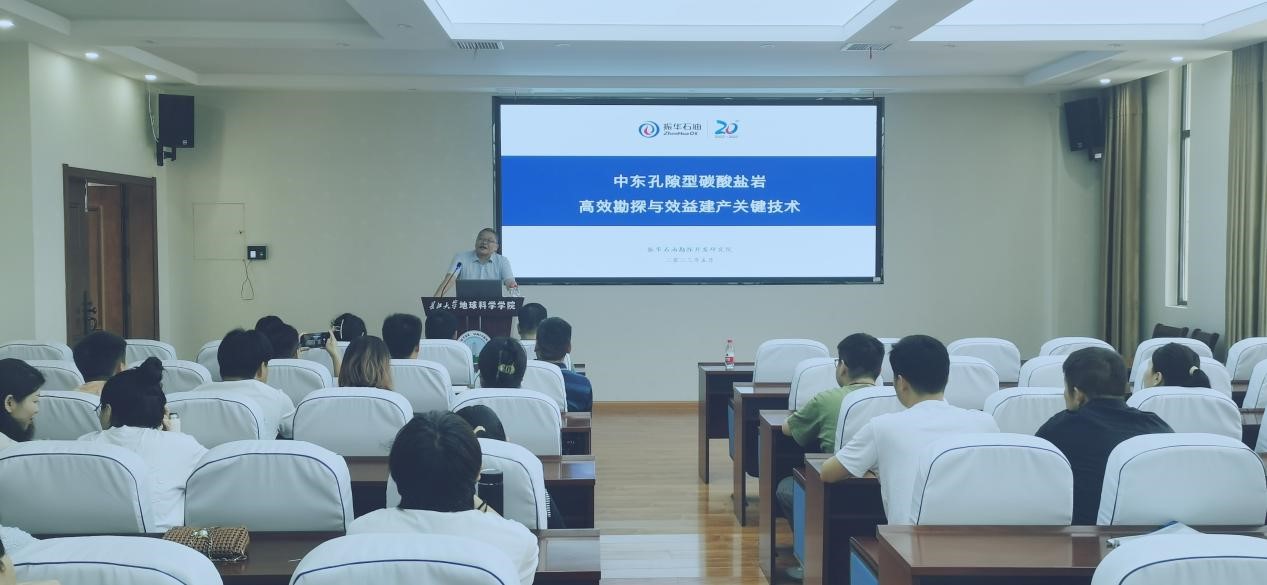 2023年5月19日上午,振华石油控股有限公司勘探开发研究院高级地质专家瞿建华做客“长大20年”学术论坛暨地学之光第347讲,以“中东孔隙型碳酸盐岩高效勘探与效益建产关键技术”为题给公司学子做学术报告。
