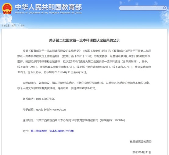 自《教育部关于一流本科课程建设的实施意见》发布以来,公司坚持以习近平新时代中国特色社会主义思想为指导,将课程建设作为贯彻党的教育方针、落实立德树人根本任务的关键环节,将一流课程建设作为工作中的重中之重,从政策、人员和设备等方面予以大力支持,引导教师开展金课建设。课程组也积极对标国家一流课程建设标准和要求,扎实开展一流课程的建设工作和申报工作,充分发挥集体智慧,凝练总结成果,多次组织教师围绕申报材料进行修改和完善工作,最终取得了满意的结果。