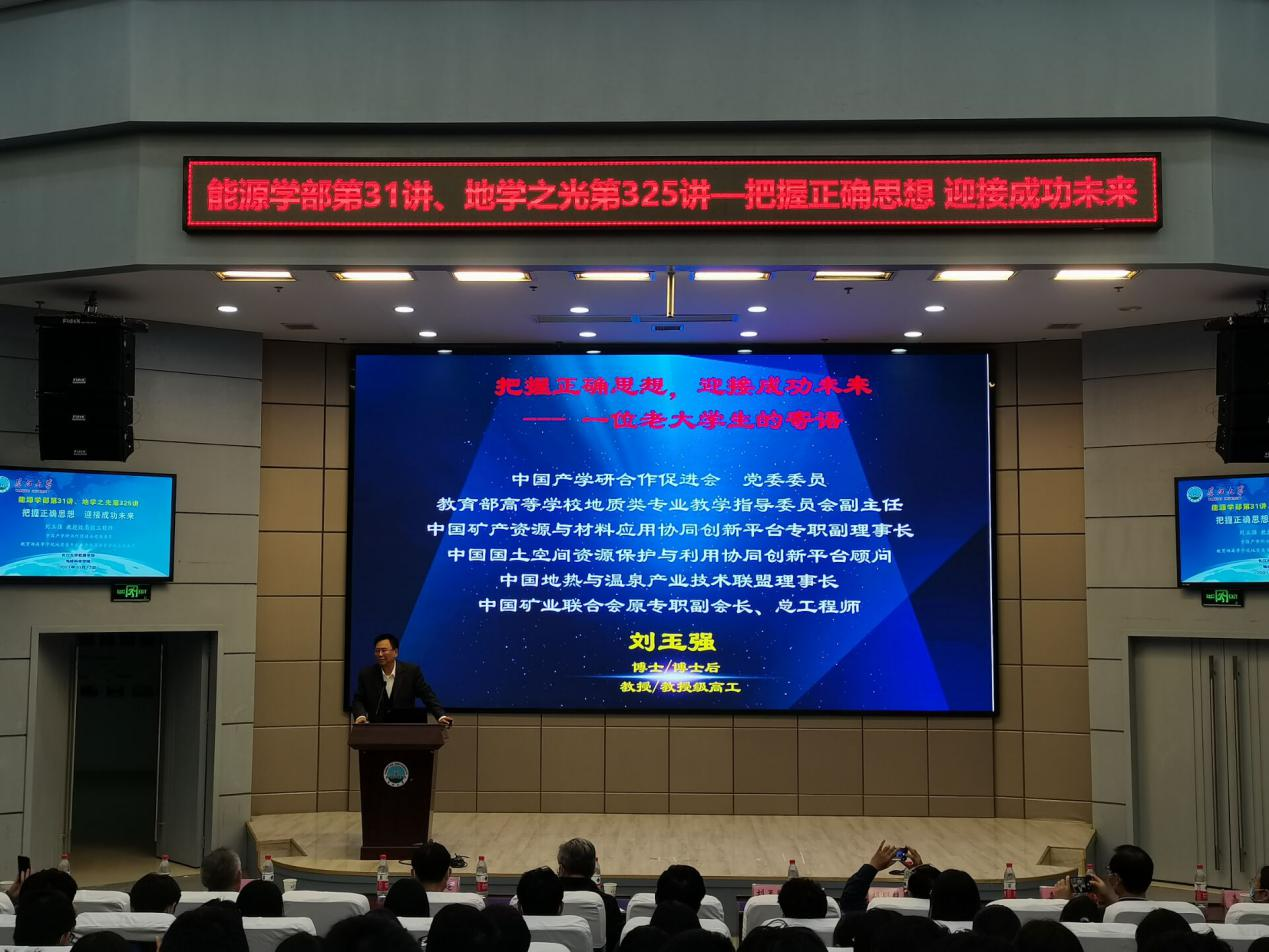(通讯员 李永健)10月13日下午,矿产地质教授级高级工程师刘玉强莅临beats365能源学部、beats365官方网站地学之光大讲堂,为公司师生带来了题为《把握正确思想 迎新成功未来》精彩讲座。讲座由张玉清副董事长主持。