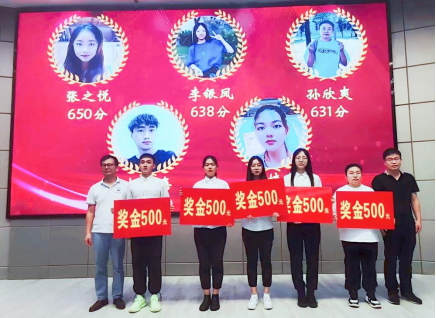 为表彰先进,进一步推动优良学风的形成,公司与典礼一同开展了2020级四级优秀表彰大会。公司2020级本科生在上半年全国老员工英语四级考试中取得了突破性的好成绩。在副经理韩登林宣读表彰文件后,地信系主任李功权、地质系主任胡忠贵分别为两个四级通过率超过80%的四级先进集体地信22001、地质22001班级代表颁奖;副经理丁四兵与石油系陈鹏书记分别为五名四级均超过600分的优秀个人进行颁奖。