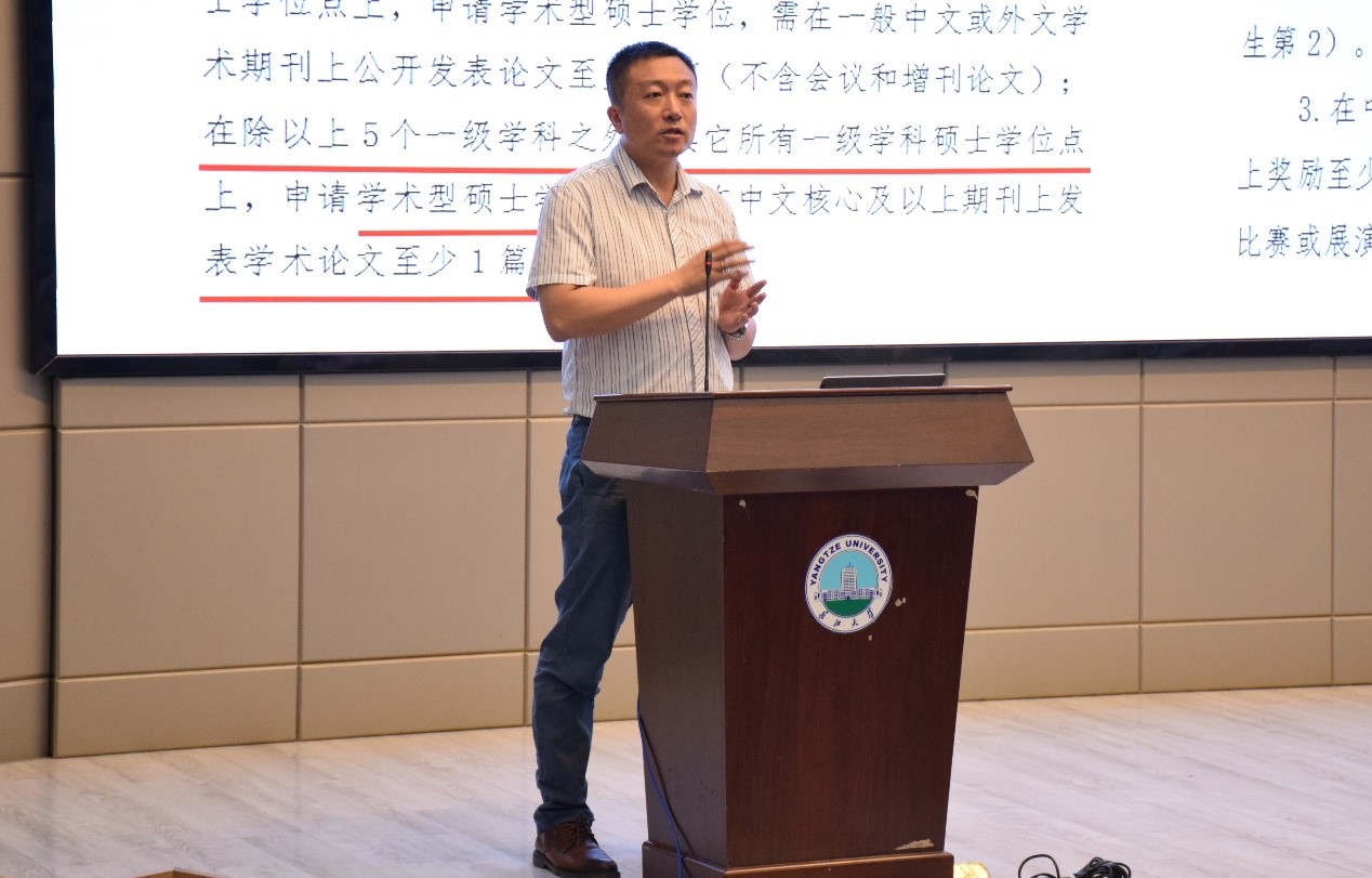 “公司会如何培养大家呢?大家现在毕业需要什么要求呢?公司的奖学金政策是什么样的?下面,我给大家一一解答。”副经理吴楠上台讲道。关于培养流程,他介绍了学制、培养计划、补修课程、中期考核、毕业答辩等方面的内容。关于毕业要求,他详细介绍了不同情况的同学必须达到的论文发表的级别和数目。关于毕业论文的外审要求,他提醒大家,一定要好好学习,写好毕业论文,外审的要求只会越来越严格,希望同学们能按照规定执行,努力使自己成为德才兼备的黄金一代。