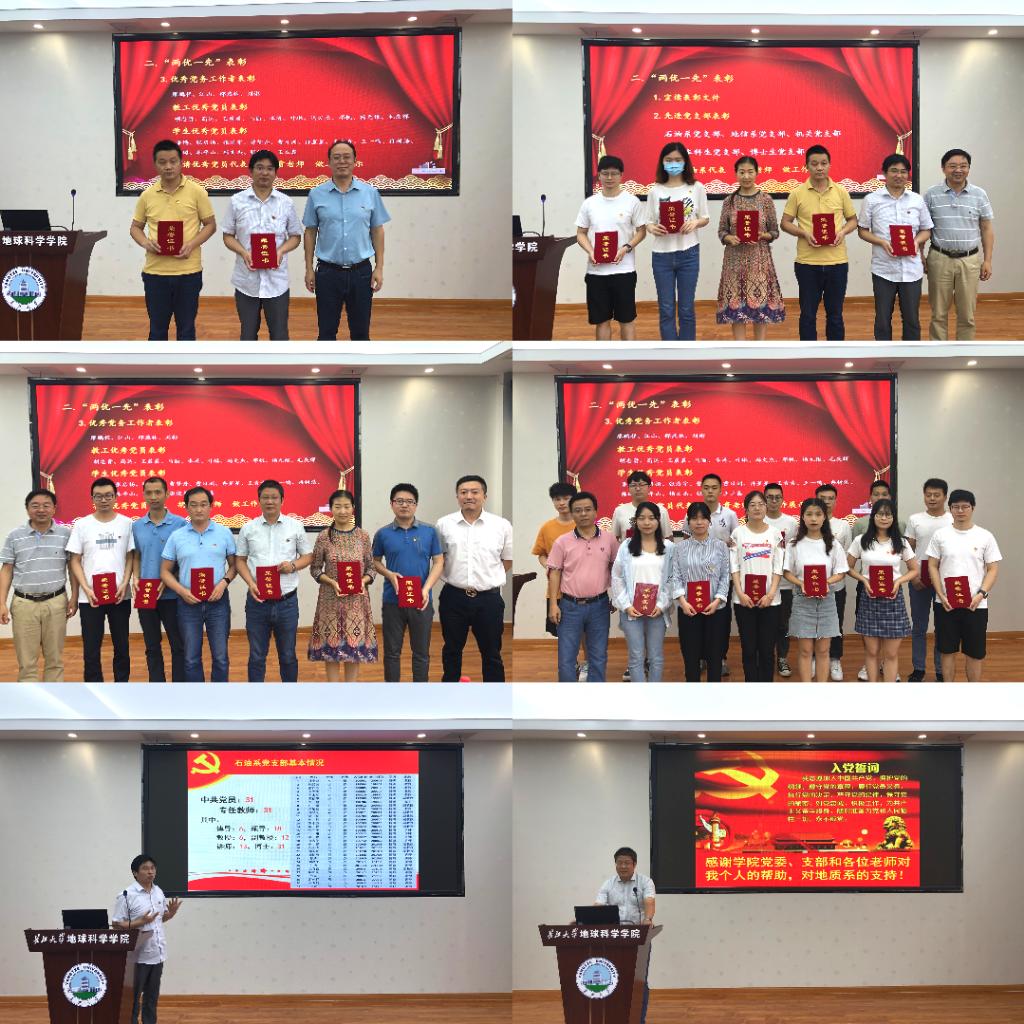 组织员郑秀才宣读“两优一先”表彰文件,公司领导为获奖者颁奖。石油系党支部等5个党支部荣获“先进党支部”称号,高达等24名师生荣获“优秀共产党员”称号;廖鹏程等4名同志荣获“优秀党务工作者”称号。 “优秀党员”荣誉获得者胡忠贵、“优秀党务工作者”荣誉获得者江山作了典型发言。