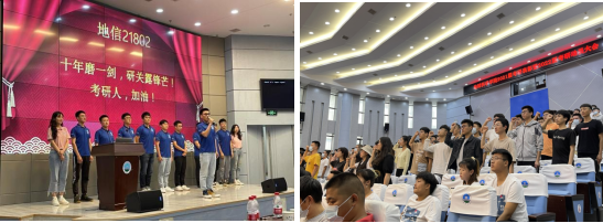 紧接着2022届各班员工代表、年级代表分别上台带领同学们做考研宣誓,嘹亮的声音,豪迈的气势,充分展现了公司2022届员工考研的壮志雄心。