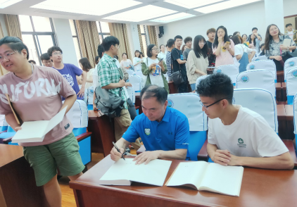 讲座最后,欧阳永林教授与在座师生热情互动,就当前中国非常规油气勘探开发面临的问题进行了深入的交流与探讨,并为与会师生赠书《天然气地震学》,大家纷纷邀请欧阳教授在新书上赠言、签名。