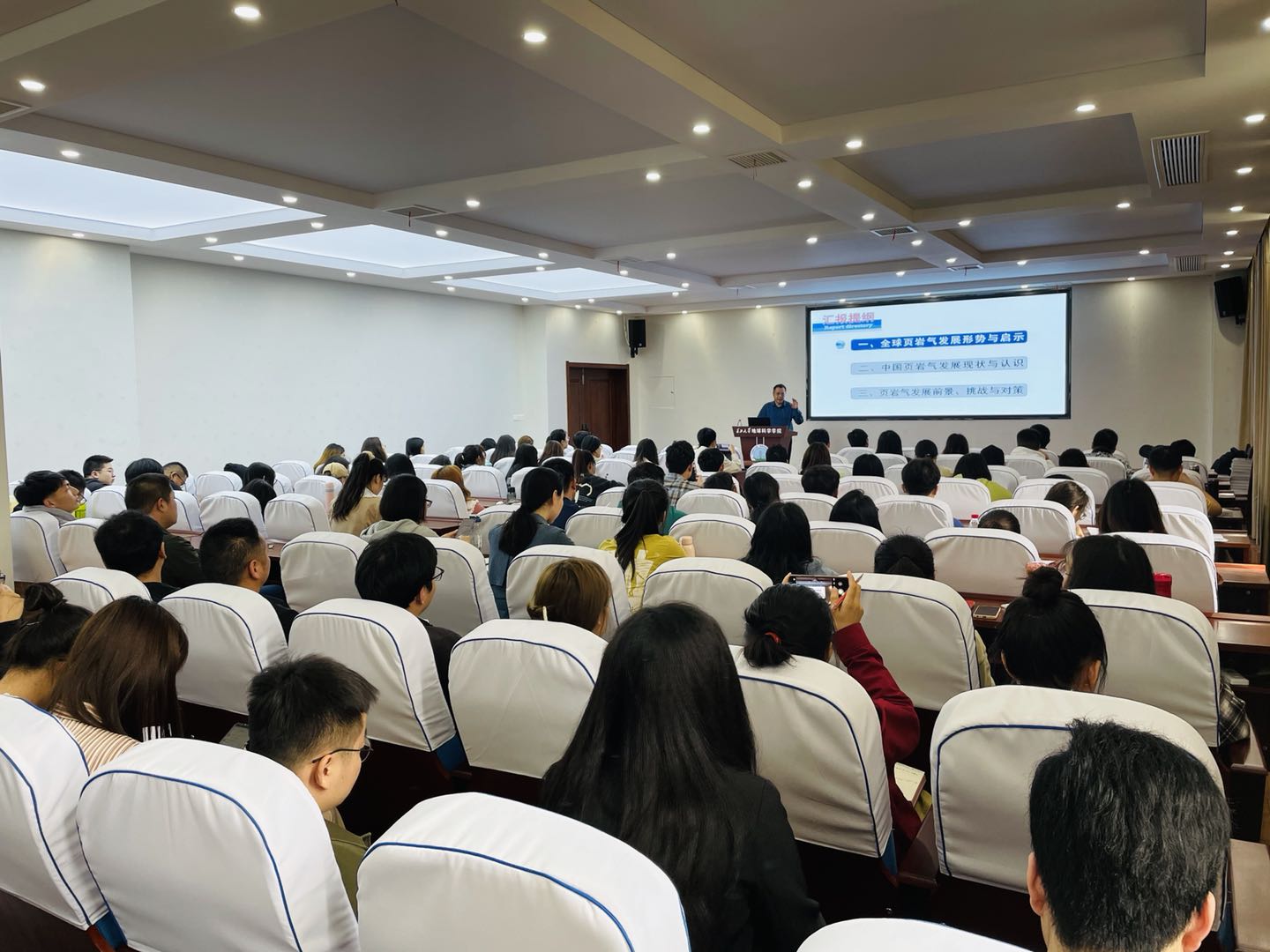 最后,李熙喆教授从3500米以浅长期稳产能力、深层页岩气规模生产、单井成本控制、矿权保护等方面对我国页岩气开发挑战展开分析,并提出对策建议。李熙喆教授的讲解深入浅出,引人深思,在座师生聚精会神,受益匪浅。
