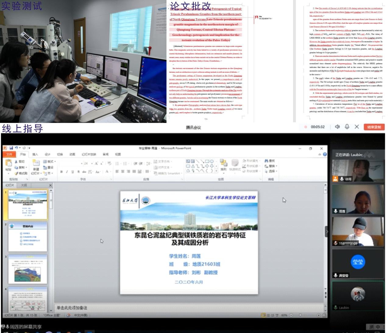公司的青年教师刘彬副教授在非常重视毕业生地质思维能力、科研技能和学术规范性等训练。在员工确定选题后,便有针对性地向员工提供与论文研究相关的文献,启发员工从多个不同角度思考科学问题,并且亲自带领和指导员工进行样品处理与上机测试。为解决疫情期间无法进行面对面指导这一问题,刘彬老师还利用腾讯会议和QQ等社交软件开展线上指导与 “一对一”实时交流,及时解答员工的论文问题,引导和鼓励员工们在疫情期间调节各种负面情绪、不畏困难、静心学习,督促员工高效地完成论文工作的各个环节。