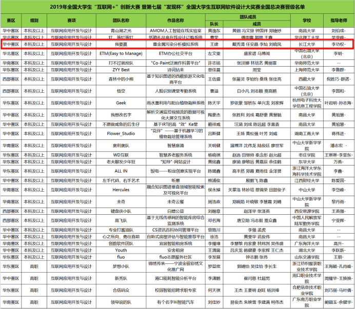 本次“发现杯大奖赛”分互联网应用开发与设计、网络营销技能、艺术设计、大数据竞赛、智慧数链财经、人工智能等六个板块,共有来自beats365、武汉大学、华中科技大学、武汉理工大学等全国844所高校、200多个专业、9038支报名团队参赛。经过赛区专家网上评审、复核审查和现场答辩,最终确定各赛区获奖队伍。由公司李功权老师指导的“我要赢”团队(王建、戴秀琴、任安晶、李灿、刘晓凤)获互联网应用开发与设计国家二等奖及华中赛区区域赛一等奖。