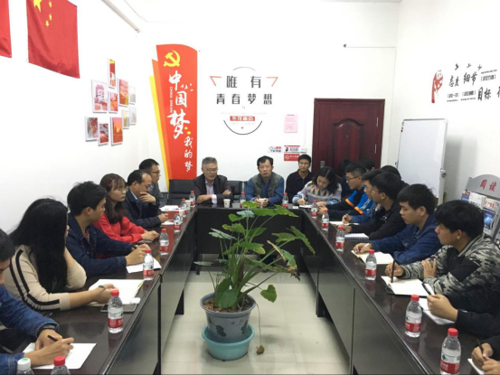 (通讯员 张浩宇/廖鹏程)为贯彻落实公司“不忘初心、牢记使命”主题教育,11月6日晚七点,在华林宿舍9栋4楼地科员工党员活动室开展了主题为“三个一”的师生座谈会。经理何幼斌、党委书记江万哲、副经理龚文平、副经理丁四兵、党委副书记任倩、全体员工工作办公室辅导员以及员工代表参加了此次座谈。