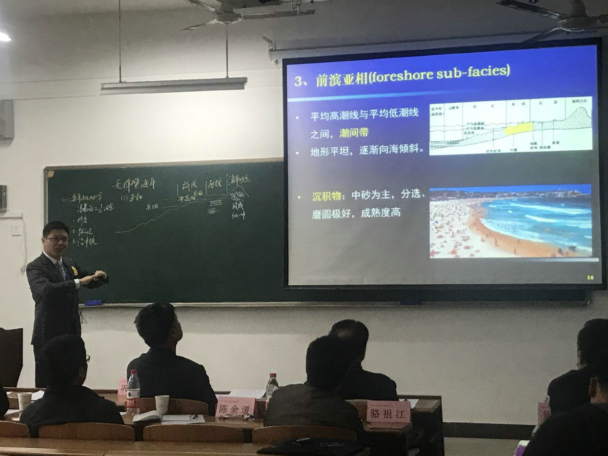 本次大赛以引导青年教师以德立身、以德立学、以德施教,进一步提升我国高等院校地质类专业青年教师的教学能力和业务水平,搭建青年教师成长平台,担当员工健康成长指导者和引路人的责任为目标。根据授课课程的差异,139名参赛选手被编为“物质组成组”、“古生物地层组”、“基础地质组”、和“工程地质组”等5个小组同时进行比赛。魏薇老师讲解的内容是《遥感地质学》课程中“空间滤波影像处理技术”部分。魏老师重点讲授了图像平滑和锐化的原理和方法,并拓展在地质领域的应用。在课堂上与员工积极互动并组织了讨论,以引导员工深入思考和更好理解课堂内容,同时采用英文板书清晰展示了课程结构。高达老师讲解的内容是《岩相古地理》课程中的“无障壁海岸相”部分,重点讲授了无障壁海岸的亚相特征及垂向层序。高老师通过问题引入教学主体内容,采用基于微信的“微助教”教学互动工具密切关注员工的前课复习及课中学习效果,结合工整的板书帮助员工建立起课程内容之间的清晰逻辑关系。两位教师精巧的教学内容设计、互动多样化的教学组织、新颖的教学方法、自然大方的教态和课程思政的融入,给评委们留下的深刻的印象。
