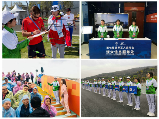 “聚志愿力量,铸军运辉煌”,在本次军运会上,公司共派出2名带队老师和153名同学参加军运会志愿者的服务工作,每一位志愿者都有一个可爱的名字——“小水杉”。他们在蔡甸区国防射箭馆为第七届世界军人运动会射箭比赛提供志愿服务、保障赛事进程。在公司负责志愿工作的射箭馆比赛项目中,中国队荣获1枚男子团体金牌、1枚混合团体银牌、1枚男子个人铜排。