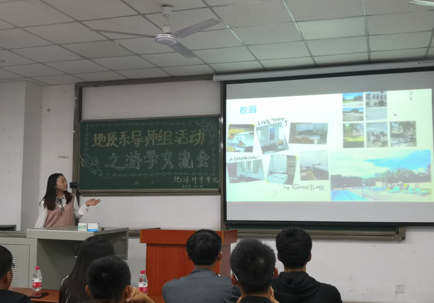 地理信息科学专业游学交流会中,赴美游学的张怿如向同学们分享了自己在新墨西哥矿业理工大学的丰富经历,使同学们对于国外游学项目有了进一步了解。她谈到有意向留学的同学不需要考虑资金不足问题,国家以及公司的资助政策就能为你留学之路保驾护航。来自16级地信系的瞿芳芳讲到:“游学时期上课时间其实并不多,教育工作者们的工作重心大部分放在“homework”上,能够更加锻炼员工的自我学习能力。”这使得同学们对国外大学有了更加深入的认识,更使同学们意识到学习英语的重要性。
