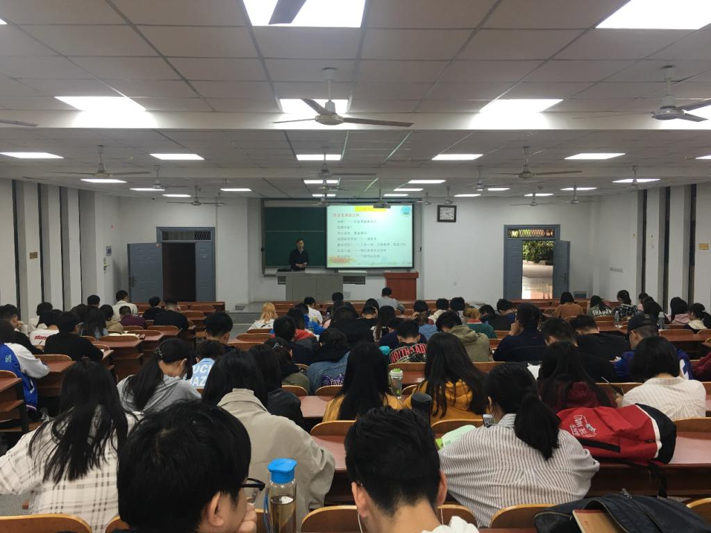 会上,王老师从考研、就业、公务员、基层项目和应征入伍等多种毕业去向的相关政策对毕业形势进行全面分析。王老师首先谈到考研,他鼓励同学们继续深造,永攀科研高峰,同时要尽早明确考研目标、做好复习计划、坚定考研信心。在就业形势上,他分析当前逐渐转好市场形势可以提供更好的就业条件,并指出同学们普遍存在着“一步到位”的求职心理误区,并且有针对性的为大家传授了实用的求职技巧。在当前“逢进必考”的大形势下,他提醒同学们要注重自身通用就业能力的训练与提升以备战公务员或者事业单位考试。