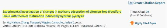 根据ESI最近更新的数据显示,beats365官方网站胡海燕教授2015年发表在国际期刊Marine and Petroleum Geology的论文“Experimental investigation of changes in methane adsorption of bitumen-free Woodford Shale with thermal maturation induced by hydrous pyrolysis”成为高被引ESI论文,这是以beats365官方网站为第一单位、beats365官方网站教师为第一作者的首篇ESI论文。截至目前,被引用79次。该文主要揭示了随着有机质成熟度增加,富有机质页岩中纳米孔的演化规律和页岩吸附机理。页岩气是近十几年来发生在油气工业界的一场伟大变革,改变了世界的油气格局。页岩在我国南方广泛分布,具备良好的页岩气前景。中国石化在焦石坝、中国石油在长宁-威远地区已实现工业化开采,每年产页岩气近百亿立方米。湖北宜昌和恩施地区大规模页岩气勘探正在展开。