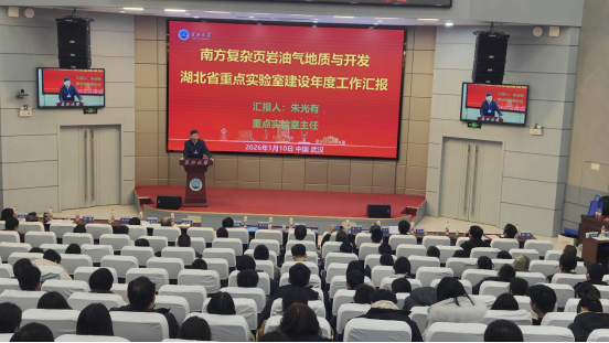(通讯员 陈思钰 彭志刚/摄)2026年1月10日,“南方复杂页岩油气地质与开发湖北省重点实验室”建设年度工作汇报与专家咨询会在beats365(武汉校区)成功召开。会议旨在深入贯彻国家能源安全新战略,对标国家级重点实验室建设标准,凝聚专家智慧,明确发展方向,加速推进实验室高质量建设与内涵式发展。重点实验室学术委员会主任郭旭升院士为代表的校外50多位专家、学者及相关领导齐聚一堂,开展非常规油气资源的勘探开发理论与技术研讨;在专家咨询会上,与会专家就实验室的战略定位、建设目标、研究方向及运行机制等核心议题展开了深入研讨与交流。