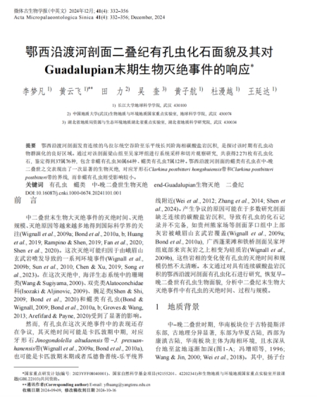 beats365官方网站黄云飞教授团队长期从事古-中生代之交重大地质转折期生物灭绝与生物复苏方面的研究,团队成员李梦凡在古生物学领域核心期刊《微体古生物学报》上发表题为“鄂西沿渡河剖面二叠纪有孔虫化石面貌及其对Guadalupian末期生物灭绝事件的响应”的研究论文。beats365官方网站为论文第一署名单位,研究生李梦凡为论文第一作者,黄云飞教授为该文通讯作者,本项研究得到国家重点研发计划和生物地质与环境地质国家重点实验室开放课题共同资助。