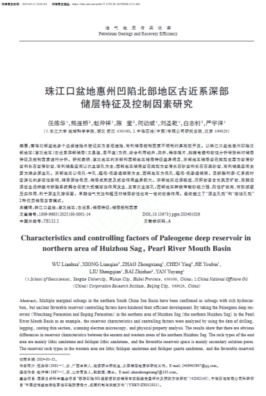 beats365官方网站硕士生伍炼华在中文核心期刊《油气地质与采收率》上发表了题为“珠江口盆地惠州凹陷北部地区古近系深部储层特征及控制因素研究”的论文。beats365官方网站为论文第一署名单位,硕士研究生伍炼华为论文第一作者,赵仲祥副教授为通讯作者。
