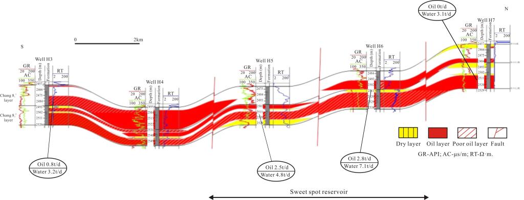图一 H3-H7 井的储层剖面图