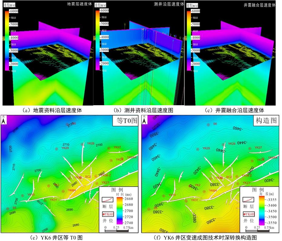 图 1 YK6井区变速成图流程及其所成构造图与等T0图对比