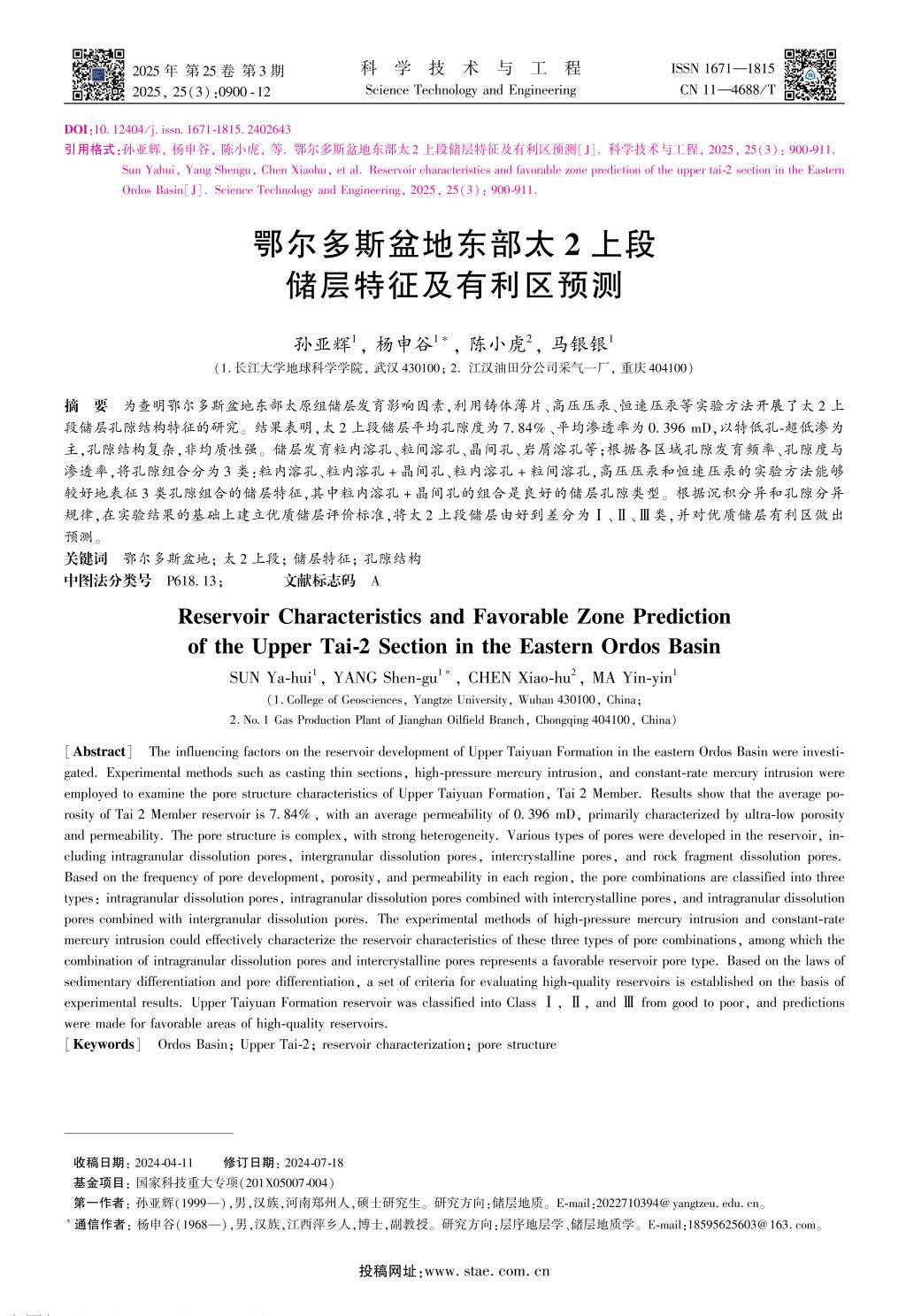 beats365官方网站硕士生孙亚辉在《科学技术与工程》期刊上发表题为“鄂尔多斯盆地东部太2上段储层特征及有利区预测”的研究论文。beats365官方网站为论文第一署名单位,杨申谷副教授为第一通讯作者,论文由国家科技重大专项《大型油气田及煤层气开发》基金项目资助。