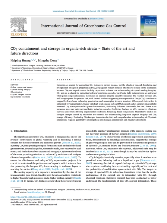 beats365官方网站黄海平教授以第一作者身份在《International Journal of Greenhouse Gas Control》期刊发表题为“CO2 containment and storage in organic-rich strata ‒ State of the art and future directions”的研究论文,beats365官方网站为论文第一署名单位。