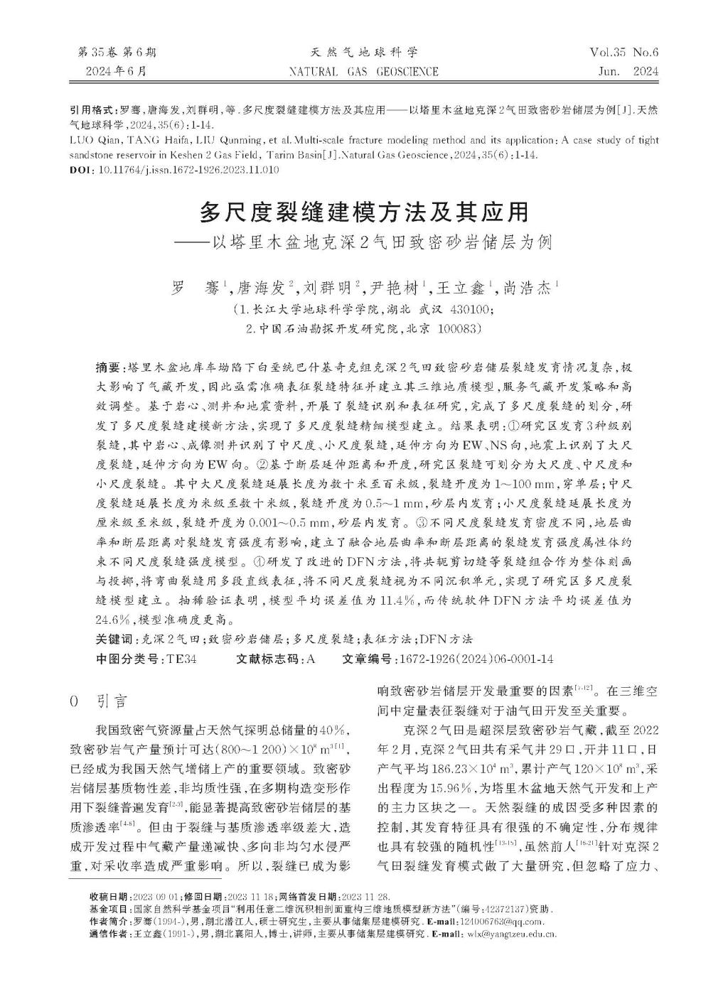 beats365官方网站地质学研究生罗骞在《天然气地球科学》上发表了题为“多尺度裂缝建模方法及其应用——以塔里木盆地克深2气田致密砂岩储层为例”的研究论文。