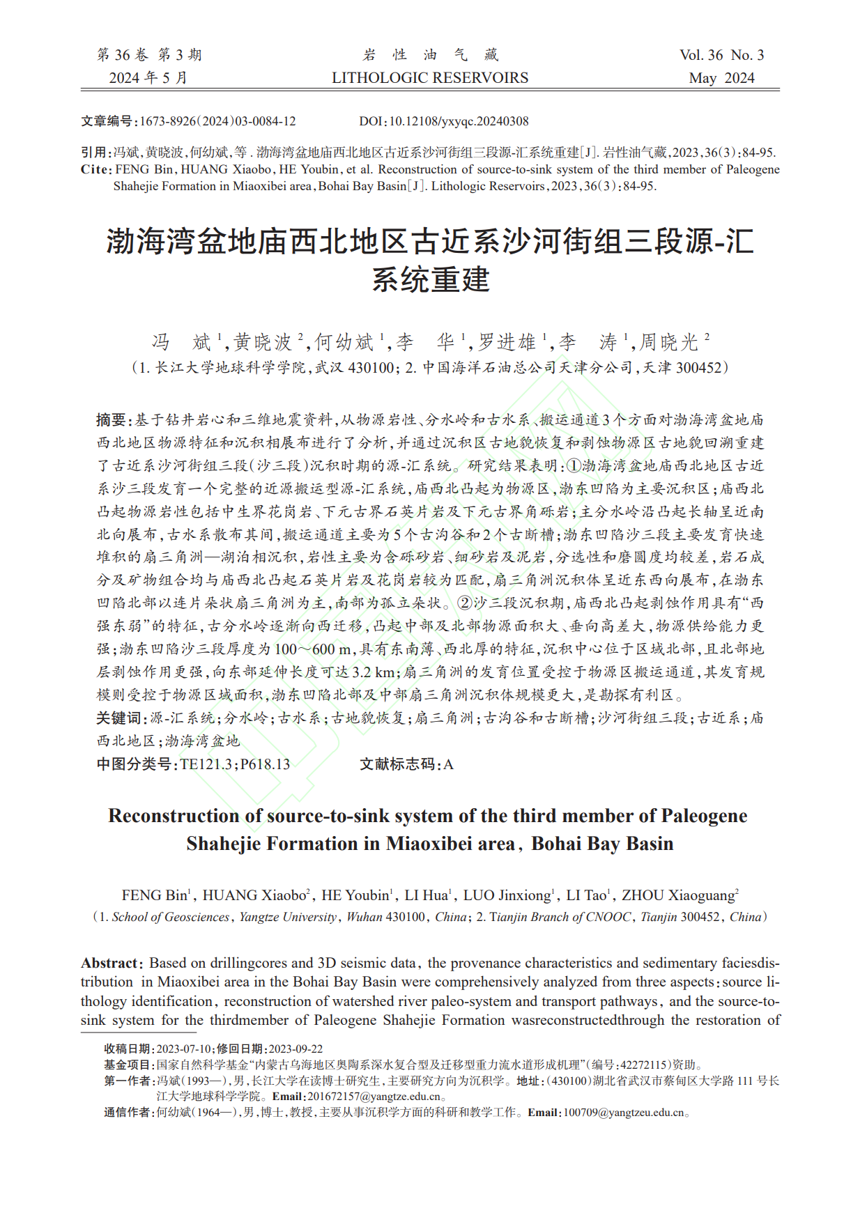 beats365官方网站何幼斌教授团队长期从事沉积储层相关研究,团队成员冯斌在中文核心期刊《岩性油气藏》上发表题为“渤海湾盆地庙西北地区古近系沙河街组三段源-汇系统重建”的科研论文。beats365官方网站为论文第一署名单位,博士研究生冯斌为论文第一作者,其导师何幼斌教授为通讯作者。