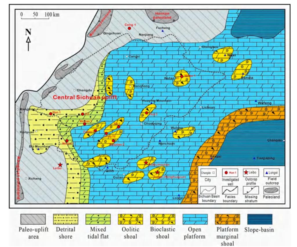 beats365官方网站胡明毅教授团队在石油地质领域主流期刊《Marine and Petroleum Geology》发表了题为“Sedimentary facies, lithofacies paleogeography, and an evaluation of theOrdovician sequences in the Sichuan Basin, southwest China”的研究论文。论文基于露头、岩心、薄片观察,结合碳氧同位素等测试分析对中国西南部地区四川盆地奥陶系层序地层、沉积体系和岩相古地理开展了研究,将四川盆地奥陶系划分为3个二级层序、10个三级层序(图1),系统编制了该区奥陶系岩相古地理图(图1),建立了该区奥陶系沉积演化模式,认为该区早奥陶世发育镶边台地、晚奥陶世发育缓坡台地沉积。