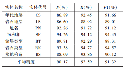 图2 地质实体识别模型识别精度