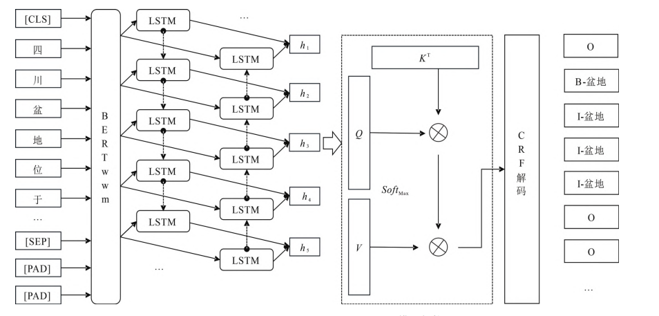 图1 BERTwwm—BiLSTM—Attention—CRF 模型架构