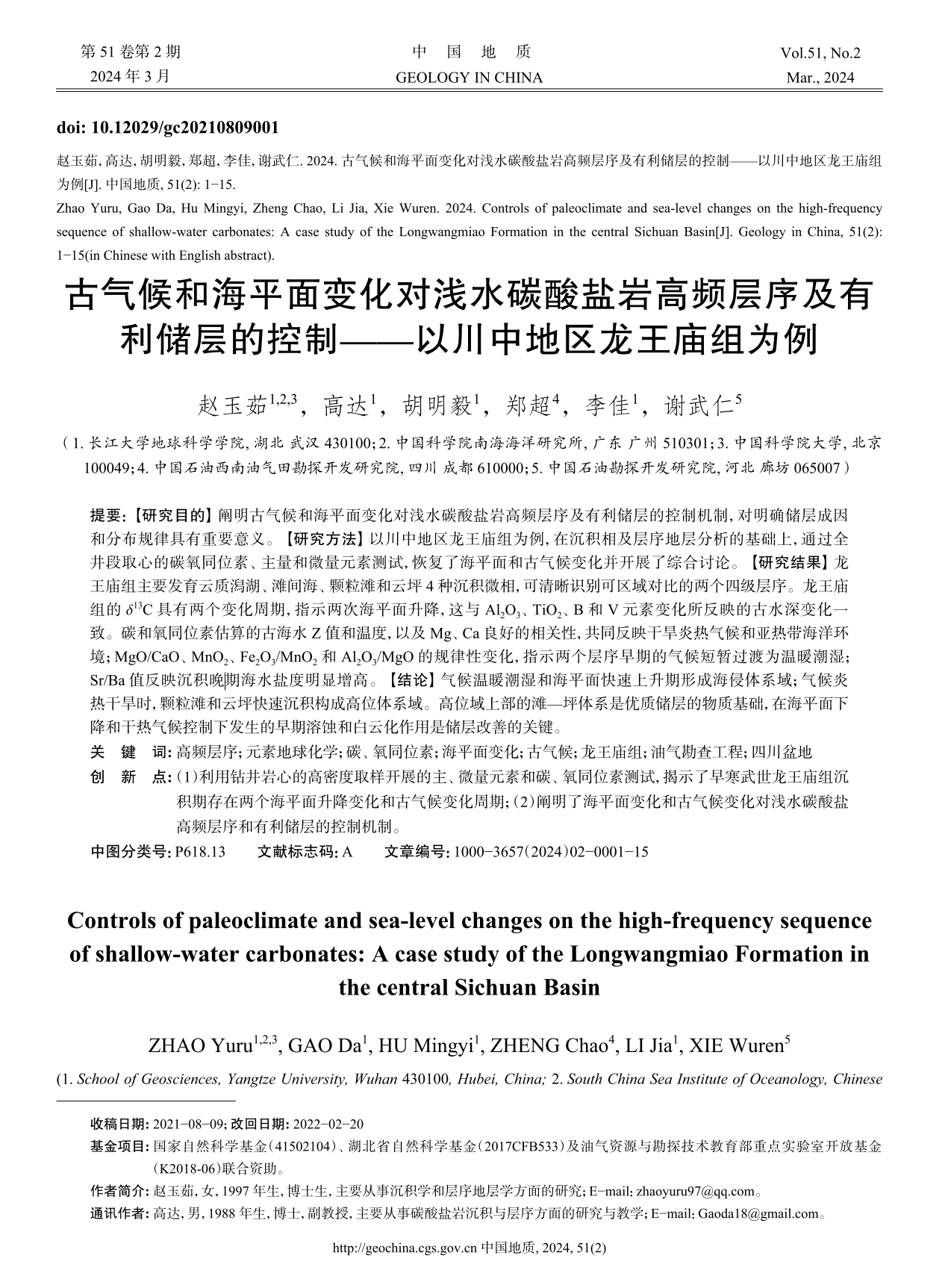 公司硕士生赵玉茹在中文核心期刊《中国地质》上发表了题为“古气候和海平面变化对浅水碳酸盐岩高频层序及有利储层的控制——以川中地区龙王庙组为例”的研究论文。beats365官方网站为论文第一署名单位,研究生赵玉茹为论文第一作者,高达教授为论文通讯作者。论文得到了国家自然科学基金与教育部重点实验室开放基金的联合资助。