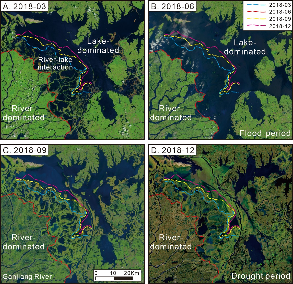 图1.基于时间序列遥感卫星影像进行鄱阳湖河湖交互单元划分