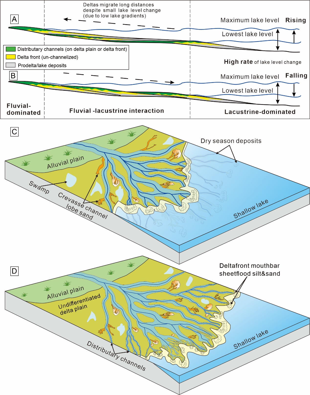 图2.河湖交互沉积模式