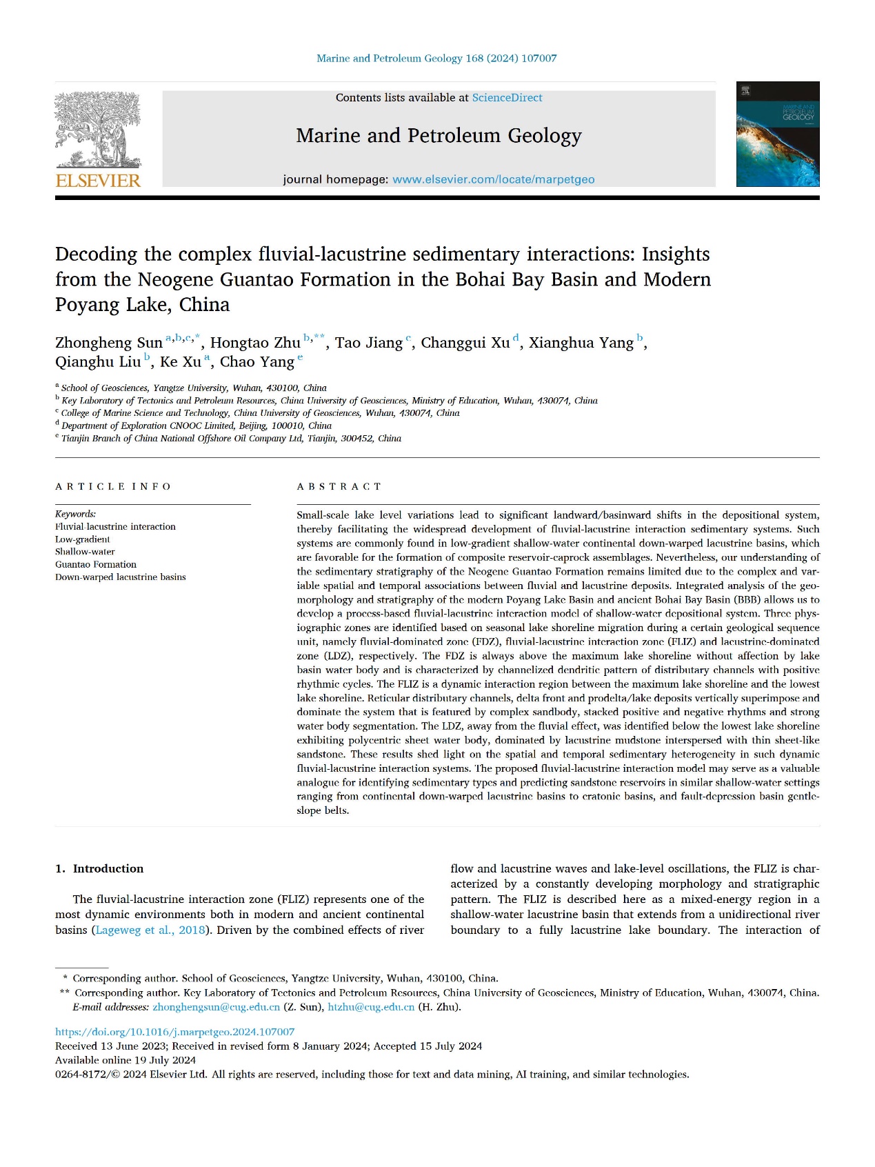 beats365官方网站教师孙中恒博士以第一作者身份在石油地质领域主流期刊《Marine and Petroleum Geology》以“Decoding the complex fluvial-lacustrine sedimentary interactions: Insights from the NeogeneGuantaoFormation in the Bohai Bay Basin and Modern Poyang Lake, China”为题发表论文,该项研究得到了国家自然科学基金项目和博士后面上项目的资助。