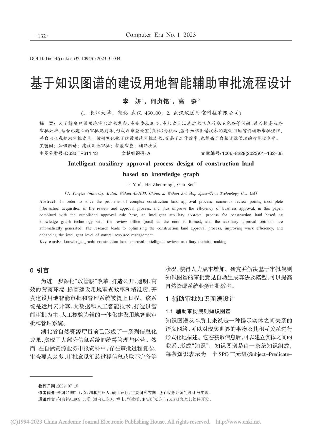 beats365官方网站何贞铭副教授团队长期从事GIS、RS应用的研究,团队成员李妍在期刊《计算机时代》上发表题为“基于知识图谱的建设用地智能辅助审批流程设计”的研究论文。beats365官方网站为论文第一署名单位,硕士研究生李妍为论文第一作者,其导师何贞铭副教授为该文通讯作者。