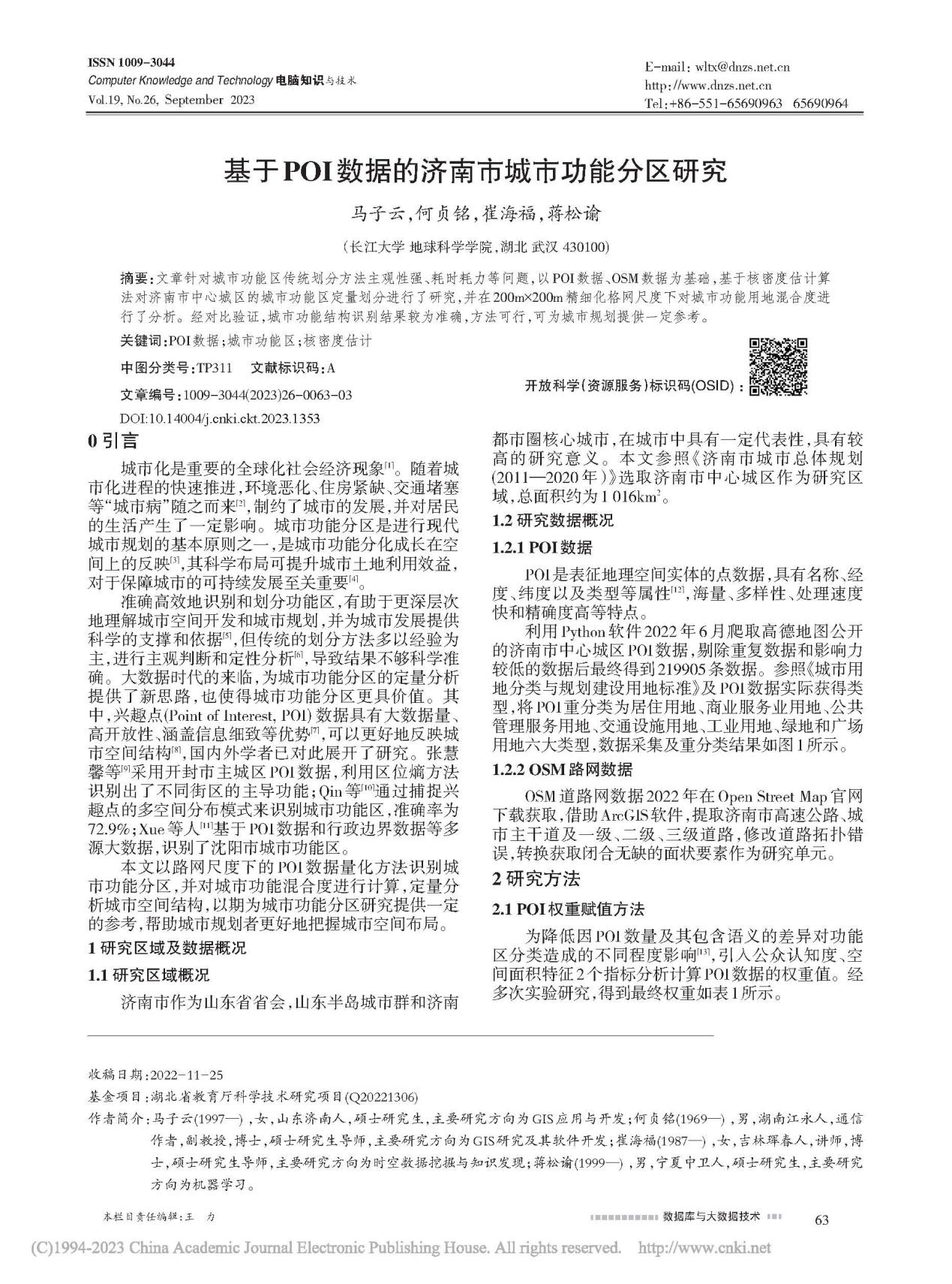 研究针对城市功能区传统划分方法主观性强、耗时耗力等问题,以POI数据、OSM数据为基础,基于核密度估计算法对济南市中心城区的城市功能区定量划分进行了研究,并在200m×200m精细化格网尺度下对城市功能用地混合度进行了分析。经对比验证,城市功能结构识别结果较为准确,方法可行,可为城市规划提供一定参考。